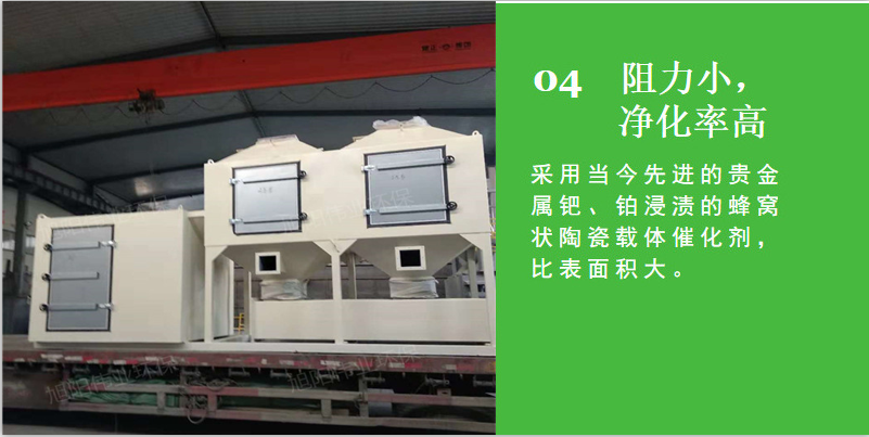 選用成型的蜂窩活性炭作為吸附材料,吸附壽命長,吸附系統阻力小。