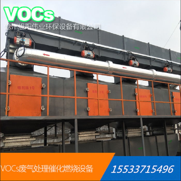有機(jī)廢氣進(jìn)入活性炭吸附塔裝置,活性炭塔里的活性炭吸附廢氣中的VOCs