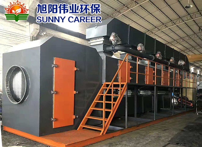 合物由脫附風(fēng)機(jī)傳輸經(jīng)過換熱器進(jìn)行催化燃燒床燃燒,達(dá)標(biāo)后高空排放。