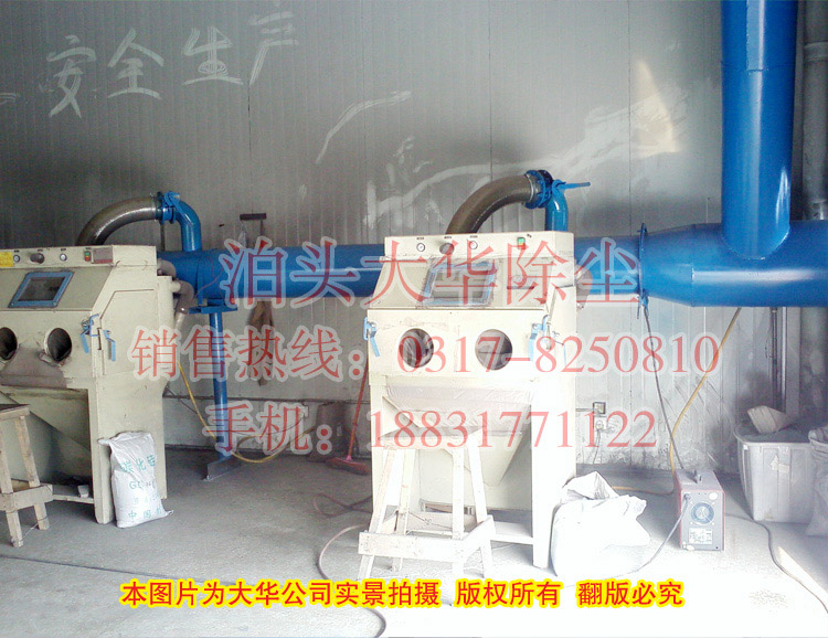 ,設計風量為:15000m3/h,可同時連接12臺噴砂機工作,每個噴砂機上均設有均風閥門,可實現單臺控制,使用更方便。