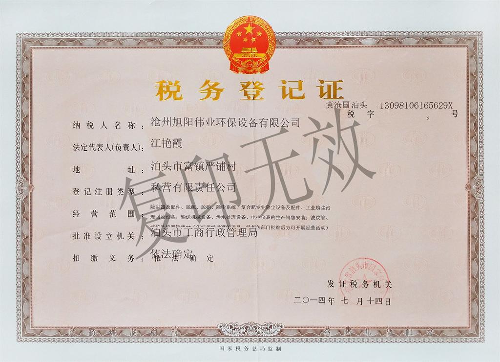國稅證書-滄州旭陽偉業環保設備有限公司