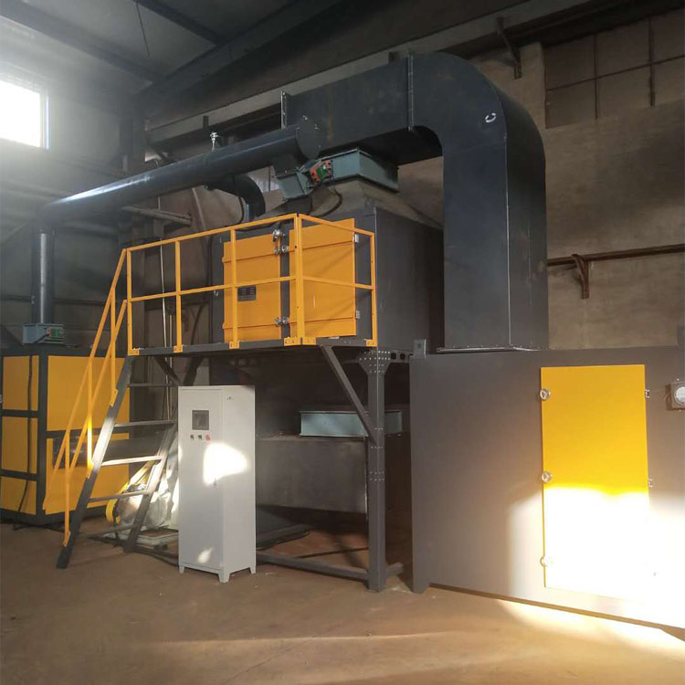 在化學反應過程中,利用催化劑降低燃燒溫度,加速有毒有害氣體氧化的方法,叫做催化燃燒法。由于催化劑的載體是由多孔材料制作的,具有較大的比表面積和合適的孔徑,當加熱到300~450℃的有機氣體通過催化層時,氧和有機氣體被吸附在多孔材料表層的催化劑上,增加了氧和有機氣體接觸碰撞的機會,提高了活性,使有機氣體與氧產生劇烈的化學反應而生成CO2和H2O,同時產生熱量,從而使得有機氣體變成無害氣體。